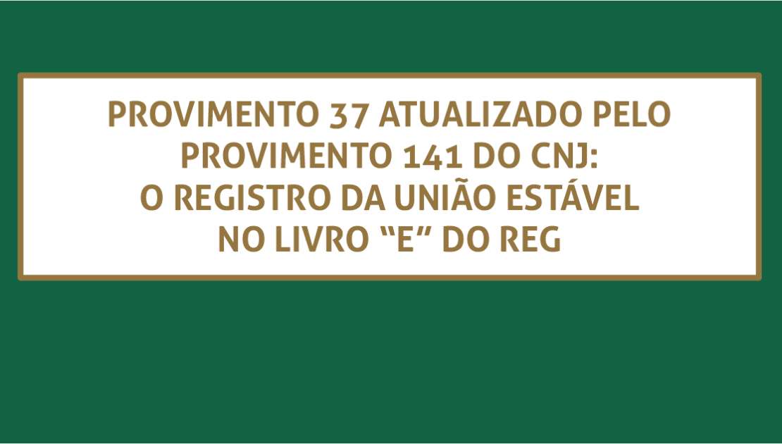 PROVIMENTO 37 ATUALIZADO PELO PROVIMENTO 141 DO CNJ: O REGISTRO DA UNIÃO ESTÁVEL NO LIVRO “E” DO REG